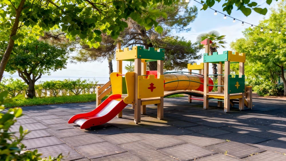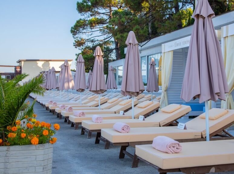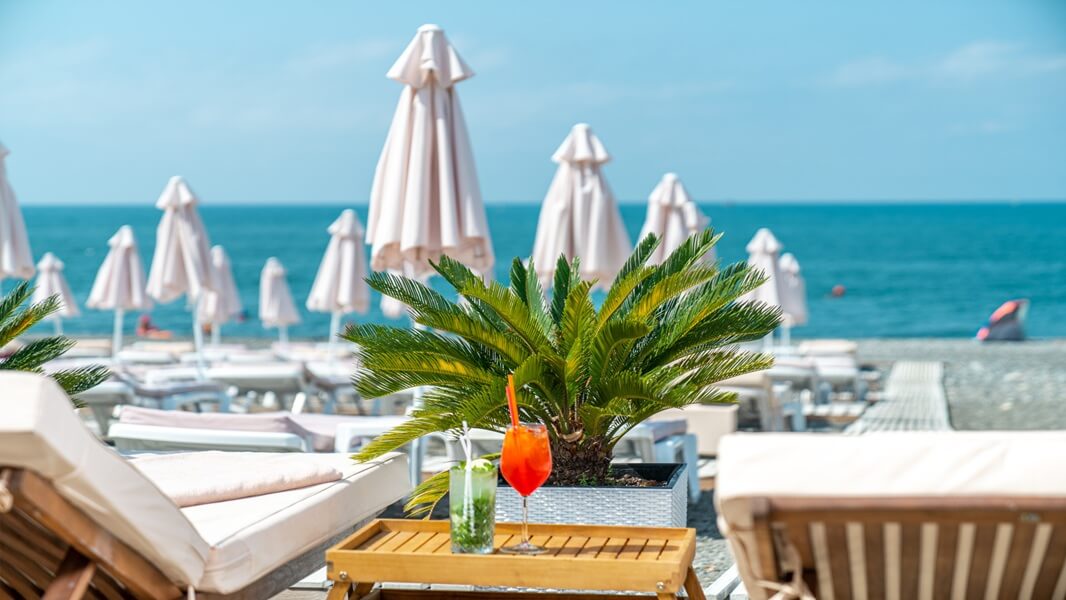 Расположение санатория на первой береговой линии в центре Адлера обеспечивает удобный доступ. До аэропорта можно добраться всего за 10 минут, а до железнодорожного вокзала — за 5.