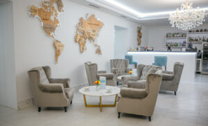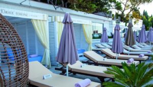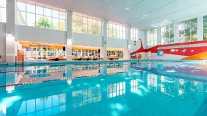 Крытый бассейн доступен с октября по май. Вода здесь также подогревается. К услугам гостей — финская сауна, джакузи, фитобар и уютная зона отдыха с шезлонгами.