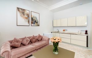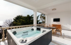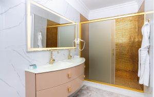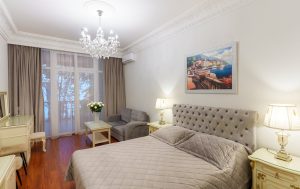 Расстояние до собственного галечного пляжа с бесплатным душем, лежаками и зонтиками 50 метров.