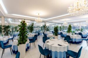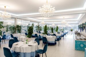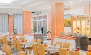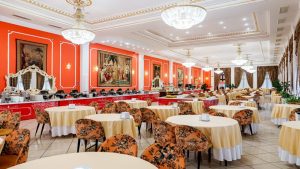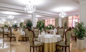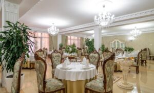 Питание гостей, проживающих в номерах категории «Люкс», организовано в пяти ресторанах по системе а-la carte, расположенных в 4 корпусе. Каждый зал отличают индивидуальный дизайн, приятная атмосфера.